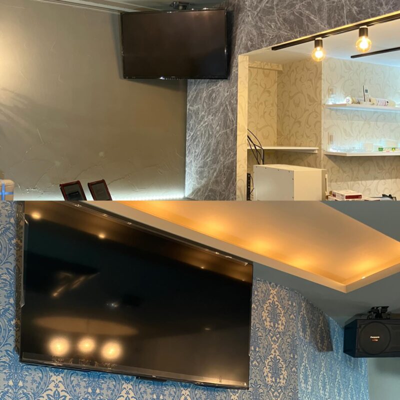 先日、お店の内装変更に伴い液晶TVとスピーカーを増設しました。